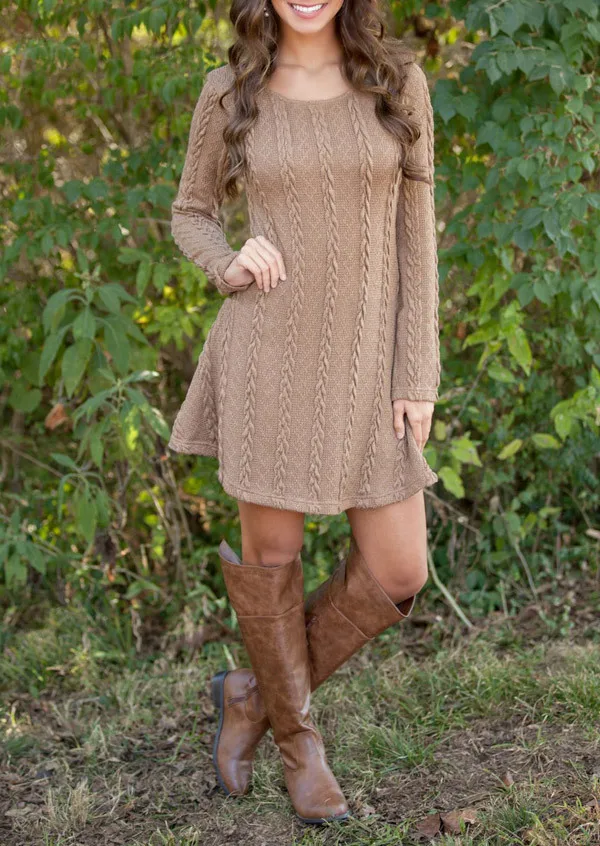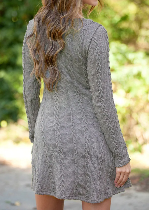 New New 2019 Women Dresses Long Sleeve Mini A-Line Knitted Sweaters Dresses Autumn Winter Casual O-Neck